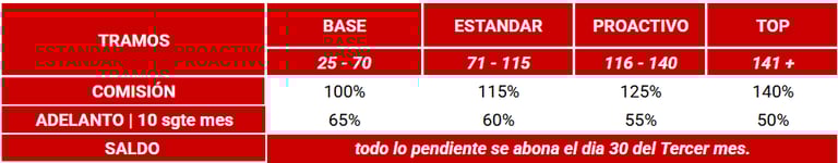 Comisiones sobre el mercado, altamente competitivas y programa de crecimiento.